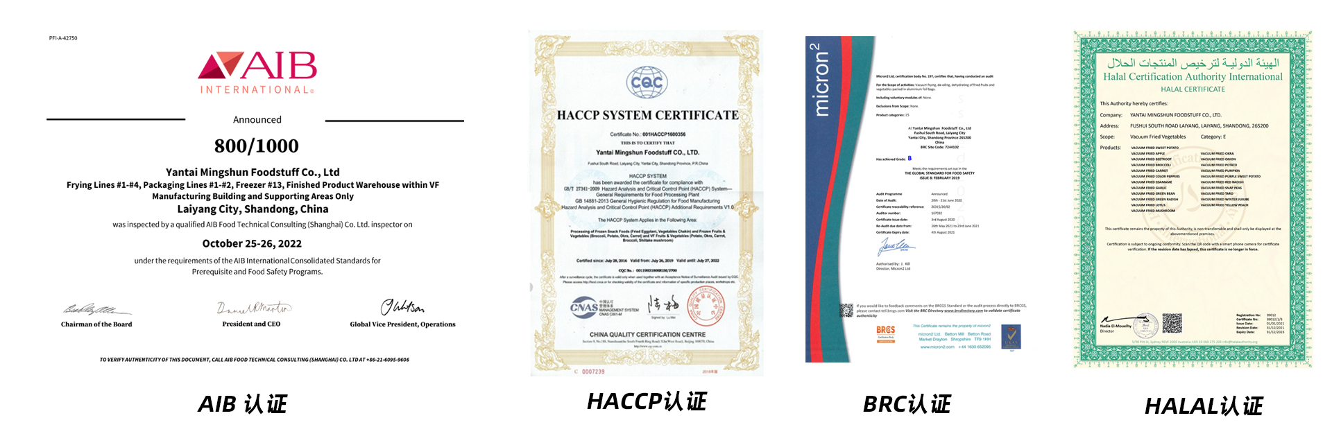 公司擁有HACCP認證和FDA注冊,公司秉承“以質量求生存、以信譽求發展”的經營理念,借鑒國內外先進的管理模式,對質量嚴格要求,將質量管理作為企業生存的第一要素。